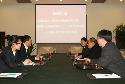1月15日下午, 山东省临朐县人大常委会原主任潘心德、冶源镇党委书记、人大主席段清、冶源镇党委委员、副镇长徐亭一行到访基金会。基金会副秘书长查德荣、办公室主任张华伟等热情接待了来宾并进行了友好座谈。