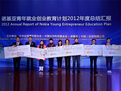 颁奖嘉宾为2012年度诺基亚创意创业大赛金奖项目代表颁奖
